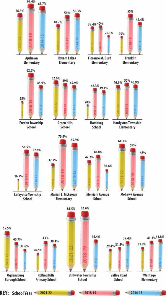 But not all local schools suffered the same fate. Some schools in Orange County, N.Y., saw third-grade reading scores improve, and significantly in a few cases. The Delaware Valley schools in Pike County, Pa., saw only slight declines across the elementary grades.
