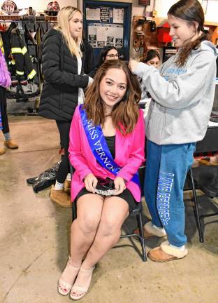 Miss Vernon Mackenzie Rivier has strands of fairy hair attached by a Vernon Township High School cosmetology student.