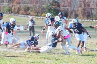 A Sussex County Community College defender gets his hands on a College of DuPage ball carrier in their game Oct. 26 at Sussex County Technical School in Sparta. The Skylanders lost, 58-21. (Photos by George Leroy Hunter) ( `````````````````````````````````) Skylanders finish season with 3-6 record The Sussex County Community College (SCCC) football team had a historic season with first-year head coach James Robertson... Sports 25 Nov 2024 | 07:29