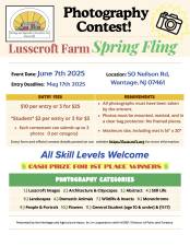 Photo contest to benefit Lusscroft Farm Residents may enter a benefit photography contest at Lusscroft Farm, 50 Neilson Road, Wantage. All skill levels are welcome.... Entertainment 12 May 2025 | 03:59